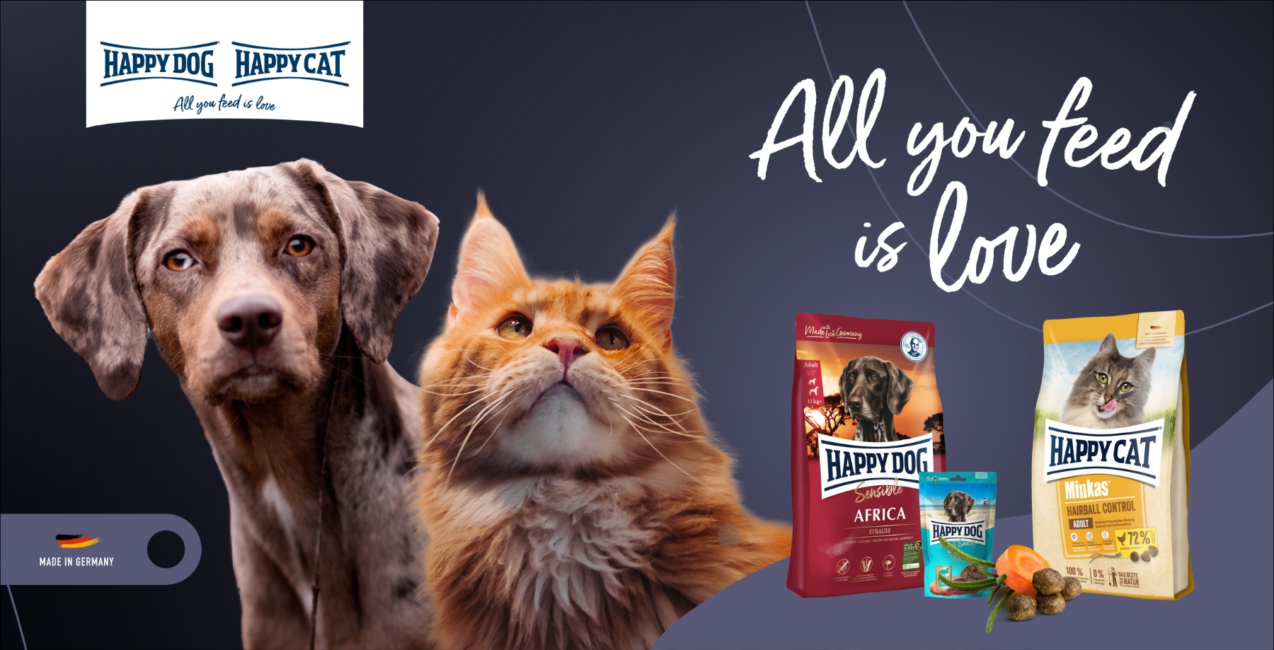 На протяжении последних лет торговые марки Нарру Dog и Happy Cat являются лидером продаж кормов для животных в Германии, а также лучшим по оценкам независимых экспертов.